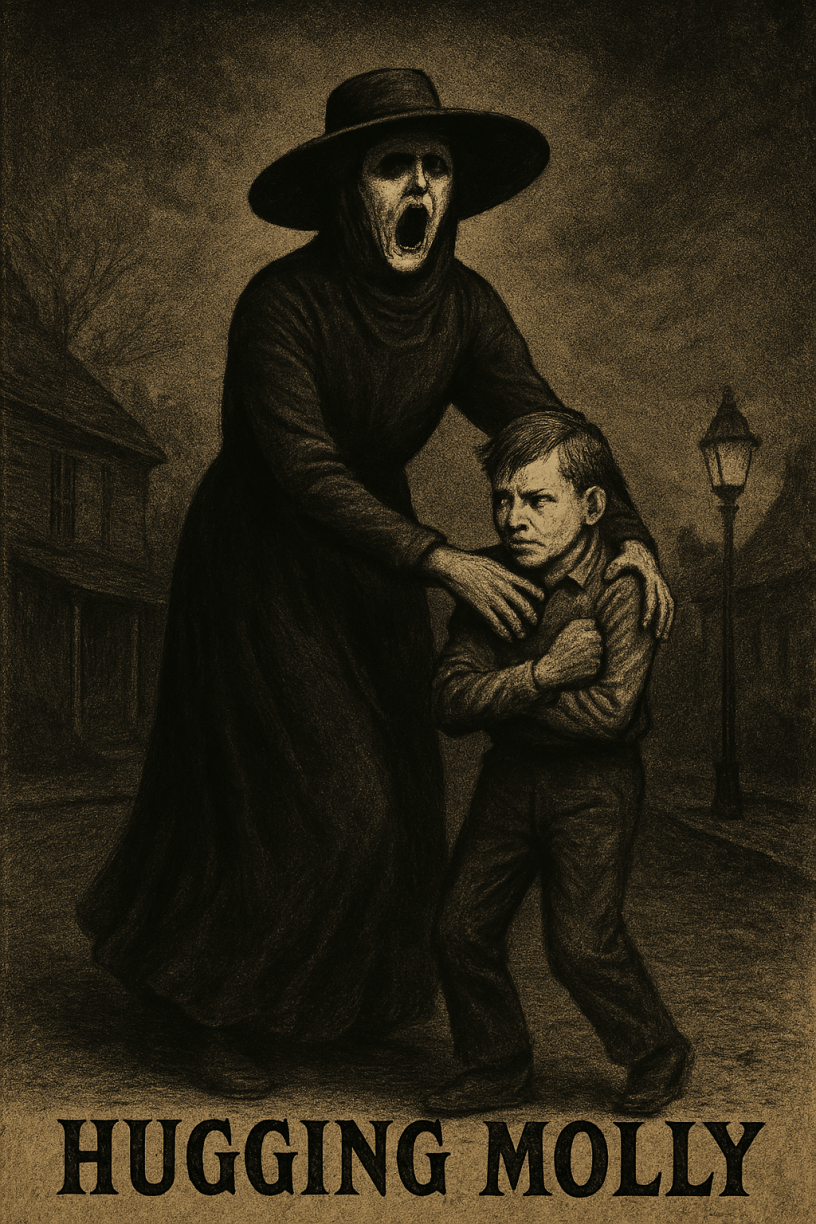 There are many speculations about who Hugging Molly might have been. Some say she was a grieving mother who lost a child and now roams the night, seeking to protect other children from danger. Others believe she was simply an invention of concerned parents who wanted to scare their kids into obeying curfews. Whatever the case, her legend has endured, passed down through generations.